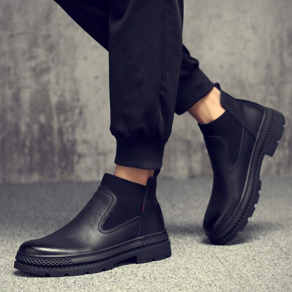 Men's New British Short Mid-Cut Boots Trendy High-Top Military Martin Boots