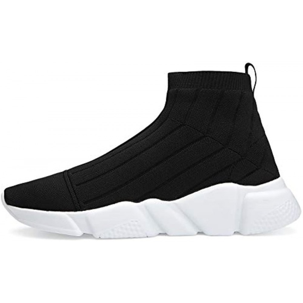 Men's Running Shoes Breathable Knit Slip On Sneakers Lightweight Athletic Casual Sports Shoes Black